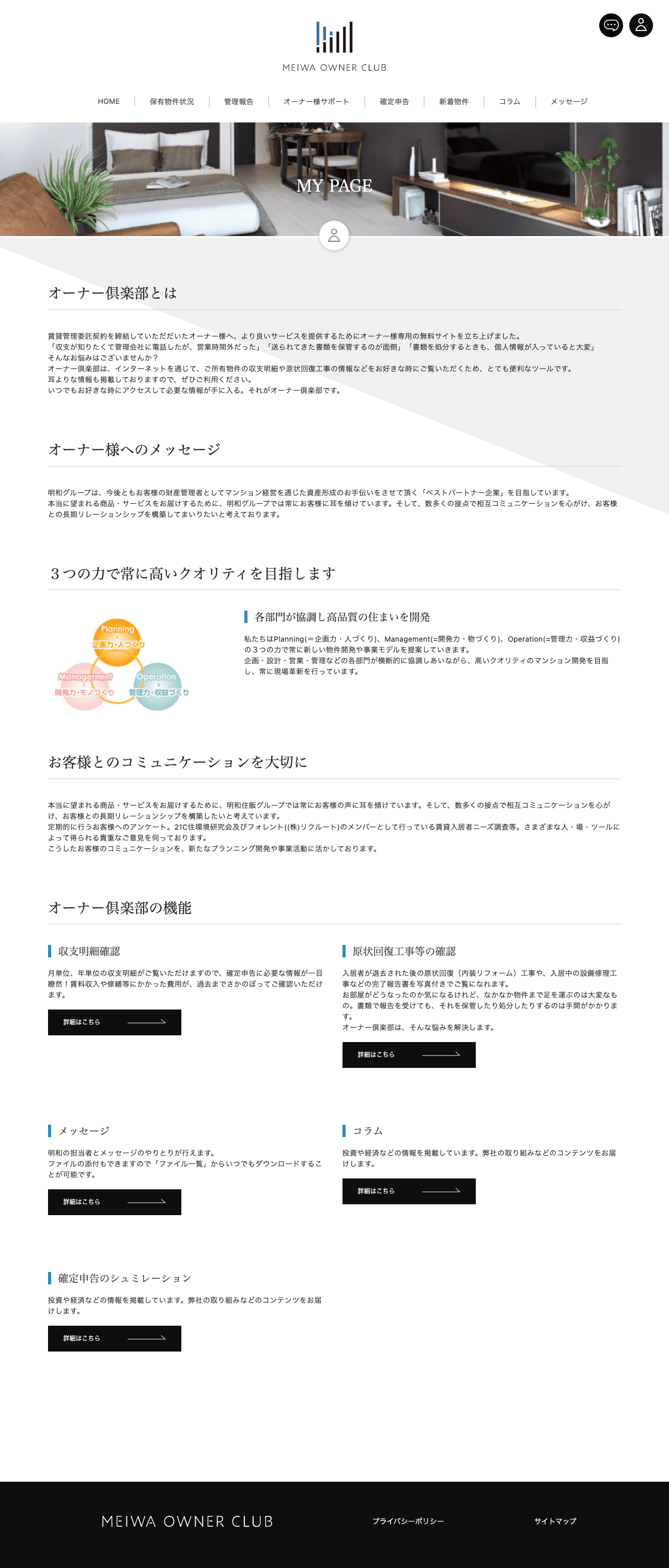 MEIWA OWNER CLUBの概要と各種機能の説明が記載されています